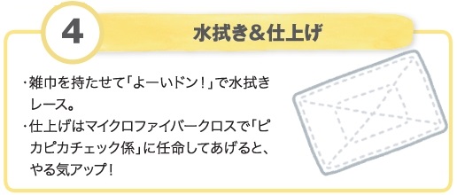 汚れがふやけて落ちやすいので、子どもでもラクに掃除できます。