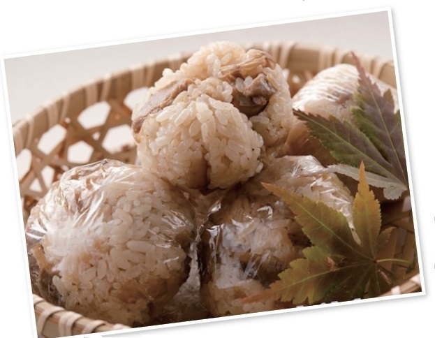 5、炊き上がったら全体を混ぜ合わせ、食べやすい量をラップに包んでにぎる。