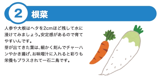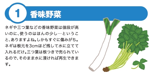 普段なら捨ててしまう野菜の切れ端を、水に浸けておくだけで新しい芽が出て、もう一度おいしく食べられるんです。
