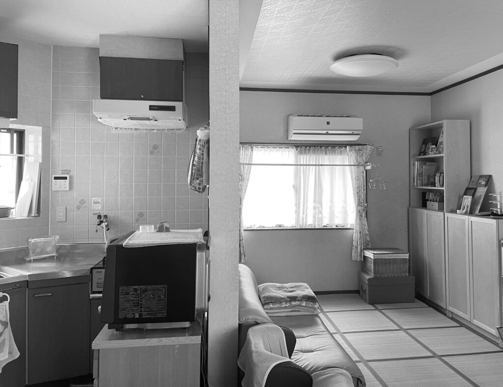 長年ご家族を支えてきたキッチンとリビング。落ち着いた雰囲気の中に、暮らしの温もりが感じられます。